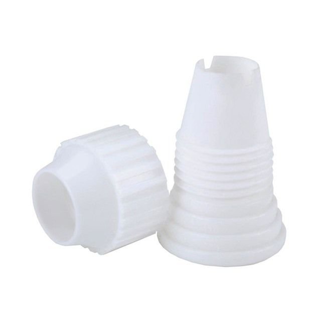 - Acoplador de plástico blanco específicamente para uso con grandes picos de decoración y relleno.