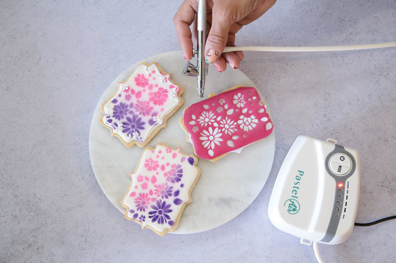 El sistema de coloración por aerografía permite lograr un aspecto llamativo por su colorido aplicando una delgada capa de colorante en superficie, minimizando así la cantidad total de colorante usado respecto del uso de pastas totalmente coloreadas (los colorantes alimenticios usados en pastelería en nuestro país son todos de tipo artificial, razón por la cual tienen una dosis máxima admisible para evitar su toxicidad en la ingesta). También sirve para dar sombras a trabajos más realistas, usar stencils para crear patrones de manera más rápida, etc.