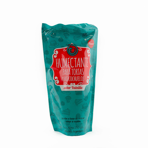 • Su textura ligera permite que la masa lo absorba fácilmente cuando el almíbar o la torta están calientes (puede calentarse el almíbar en microondas o a baño maría) y su formulación logra que el humectante quede retenido sin decantar a la bandeja (se recomienda usar un envase de humectante para un bizcochuelo de 750 gramos, pero la capacidad de absorción y retención depende de la masa).