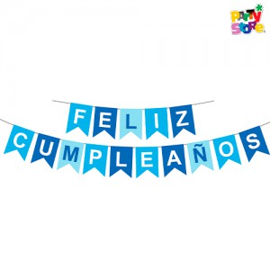 BANDERIN FELIZ CUMPLEAÑOS CELESTE Y AZUL cantidad