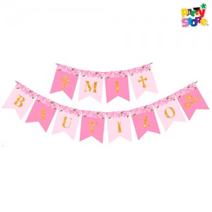 BANDERIN MI BAUTIZO ROSA