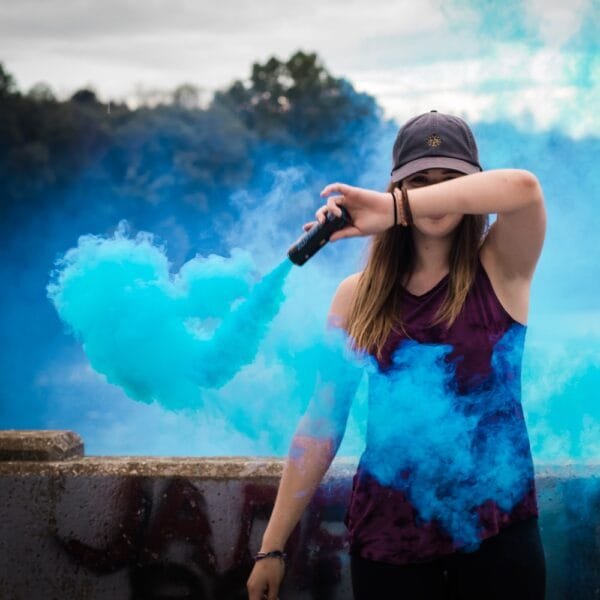 Suelta humo del color elegido y es sólo para uso diurno y en exterior.