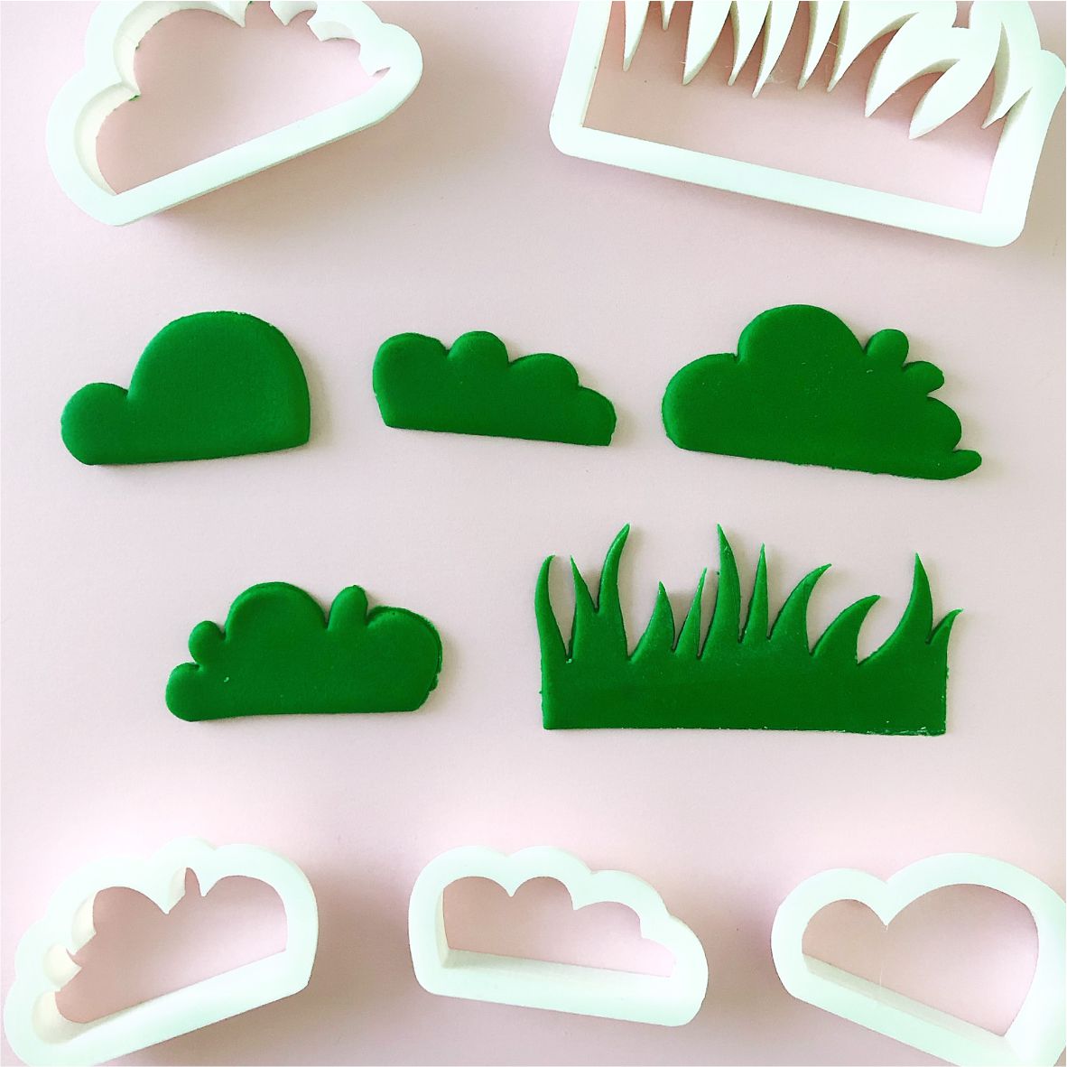 Kit de cortantes de arbusto y pasto. Las medidas van desde 4 cm de ancho y 2 de alto a 6 cm de ancho y 3,5 cm de alto.
