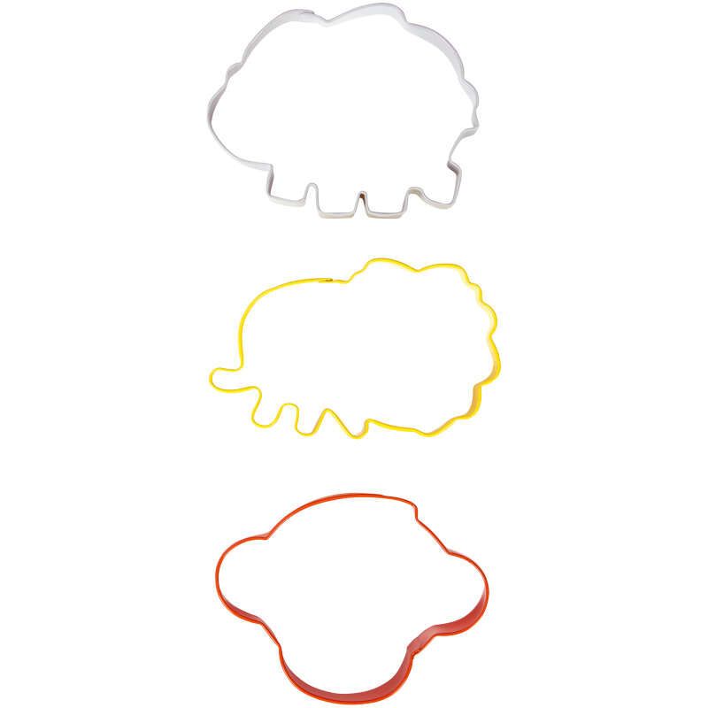 Será como un safari dulce con galletitas en forma de animal hechas con este juego de cortantes que trae las formas de un elefante, un león y un mono..