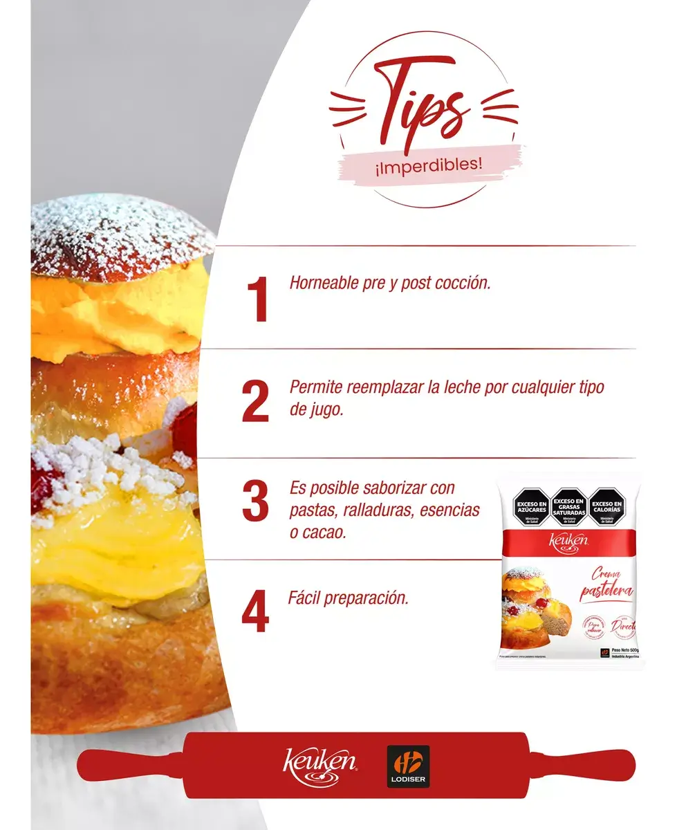 Polvo para preparar crema pastelera de textura cremosa y sabor excepcional. Uso directo, sin necesidad de cocción. Ideal para rellenar tartas y tortas, dándoles un toque irresistible.