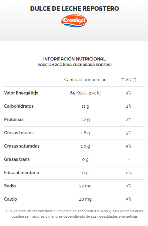 Es un producto obtenido por la concentración de leche, azúcar y bicarbonato. Su color característico es el marrón y es de sabor dulce.