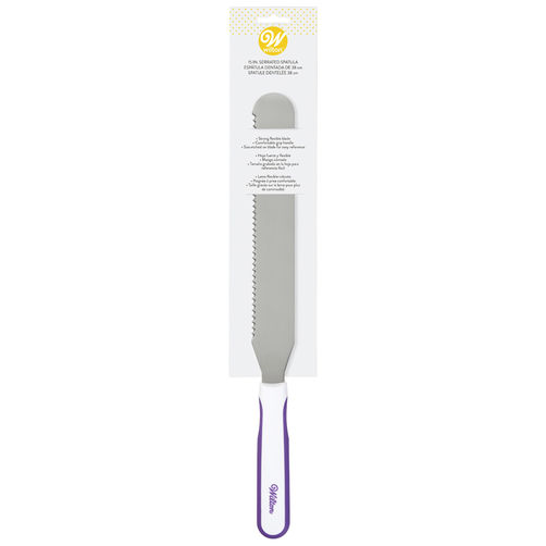 - Cubrir sus postres, agregar relleno entre capas de pastel e incluso llenar su bolsa de decoración es más fácil con las espátulas de glaseado Wilton Decorator Preferred premium. El mango ergonómico y de agarre suave fue diseñado para que sea aún más cómodo con la mano, lo que facilita su uso y agarre cuando se trata de decenas de golosinas o pasteles de varios niveles. La hoja de la espátula de acero inoxidable, diseñada para ser flexible, le brinda mejor control y destreza para un pastel, una magdalena o un postre bellamente decorados. El borde dentado de la espátula también se puede usar para nivelar.
