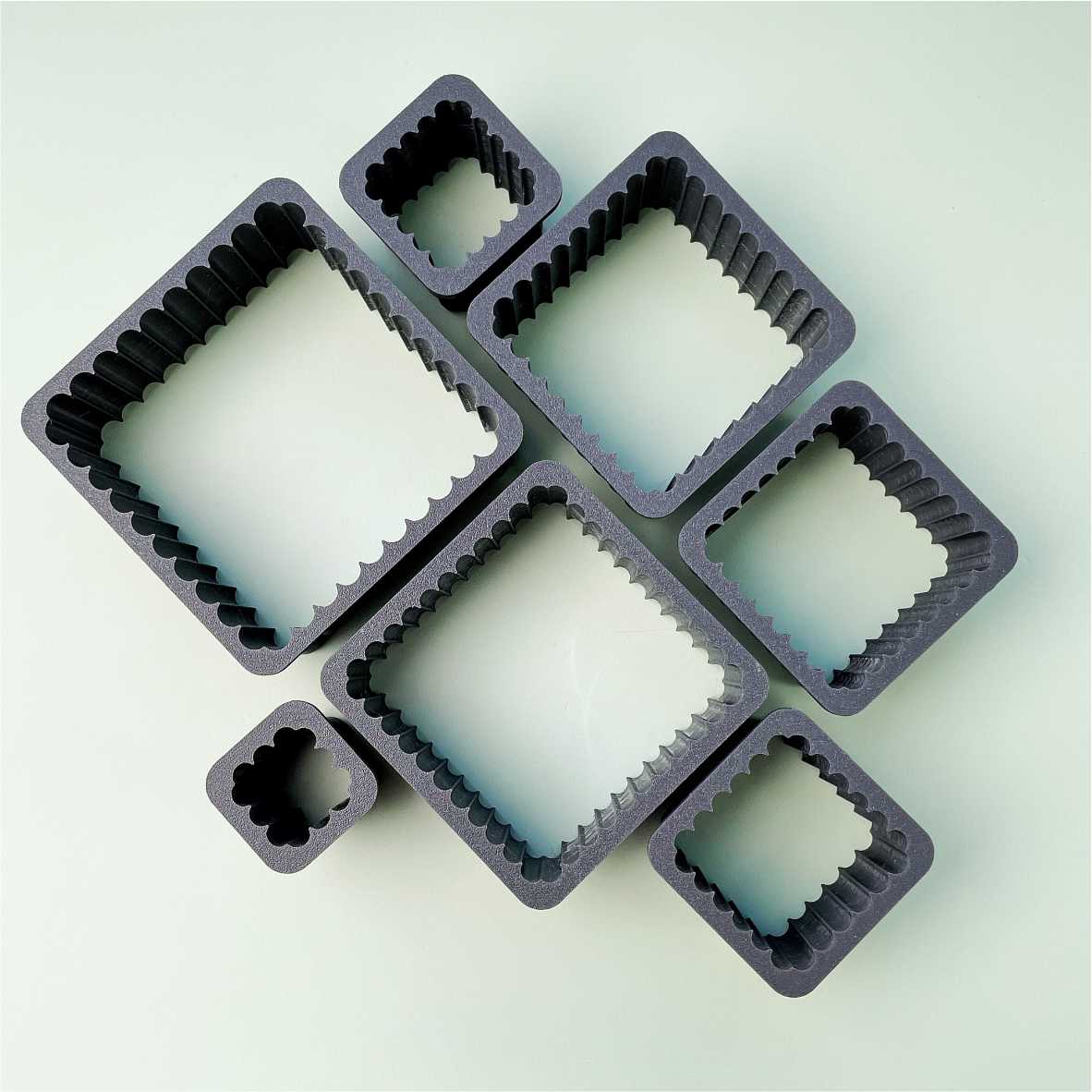 Kit de 7 Cortantes Cuadrados pensados especialmente para Pastelería, de 3,5 cm de alto y super resistentes. Acabado perfecto.