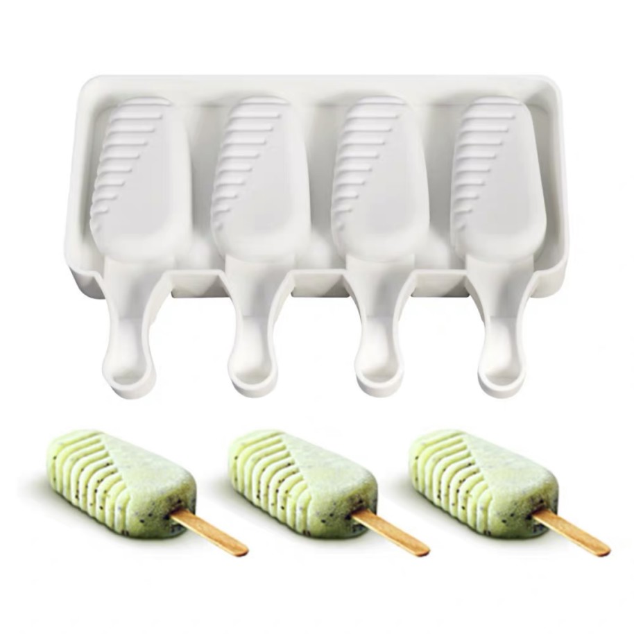 MOLDE SILICONA 4 HELADOS OVALADOS RAYAS LATERALES (0040) (CS)