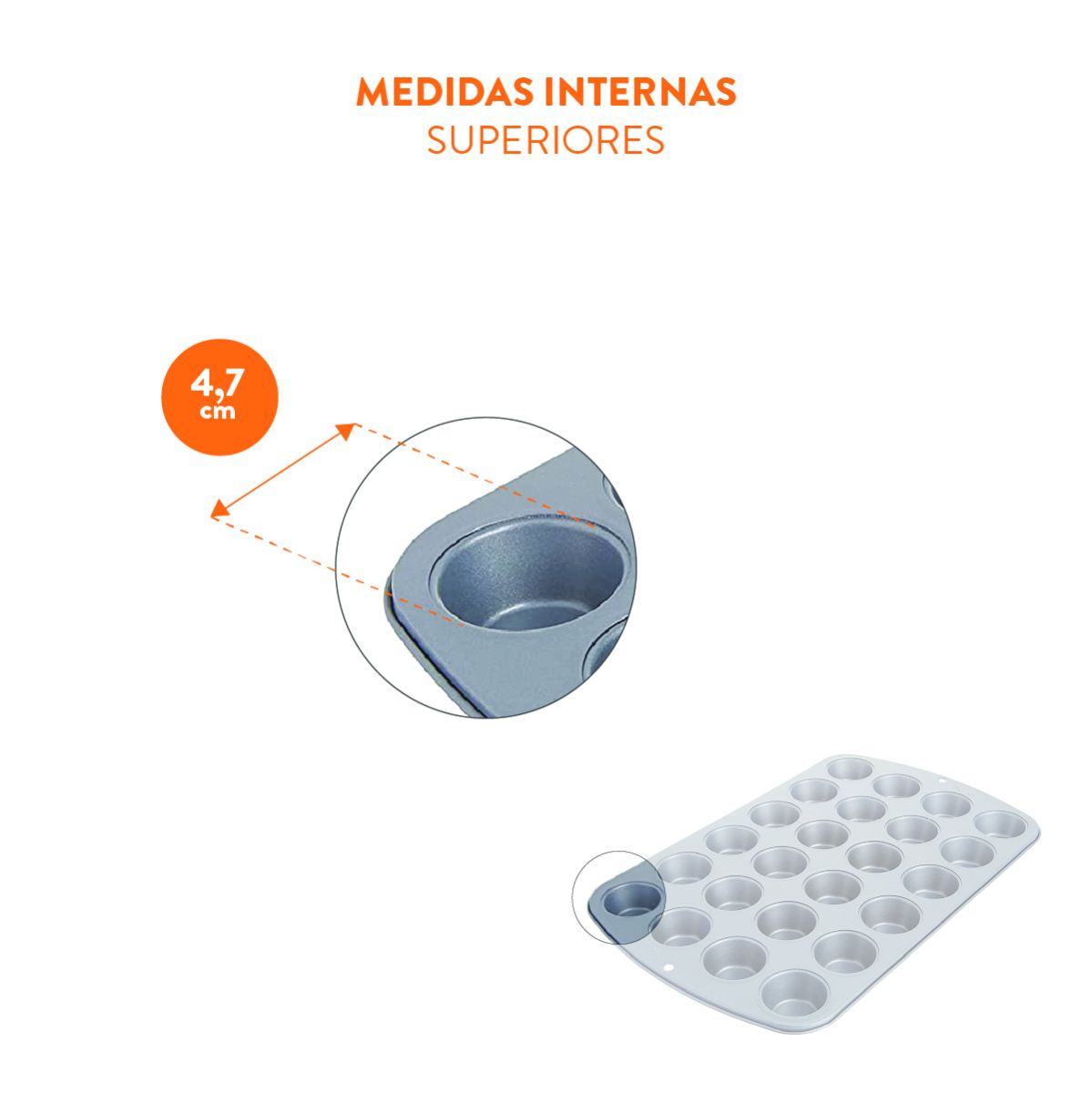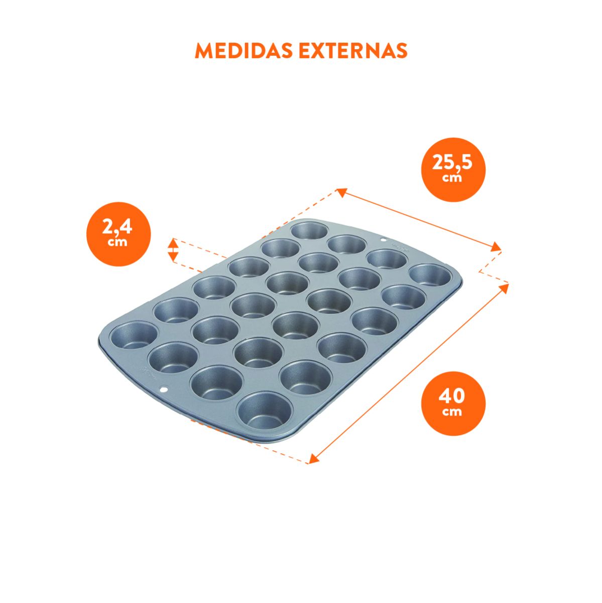 - Molde para muffins con 24 cavidades antiadherente.