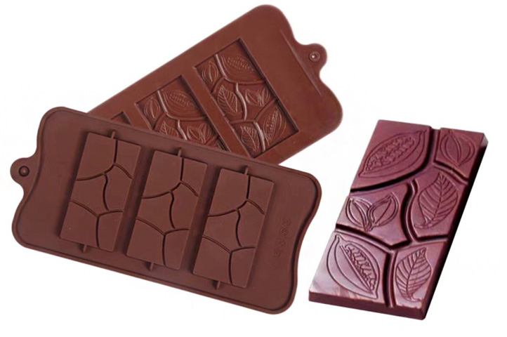 MOLDE SILICMOLDE SILICONA p/3 TABLETAS CHICAS CHOCOLATE HOJAS