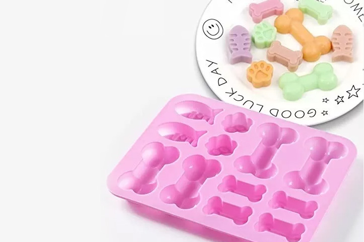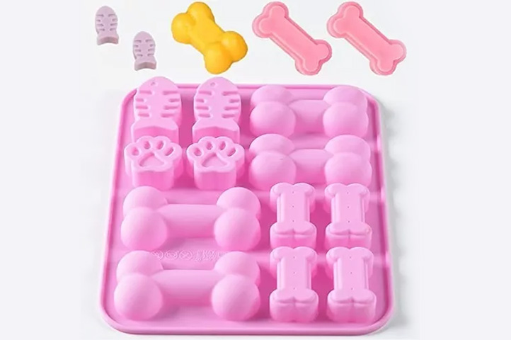 Molde de silicona con 12 cavidades para hacer huesitos, huellas y peces