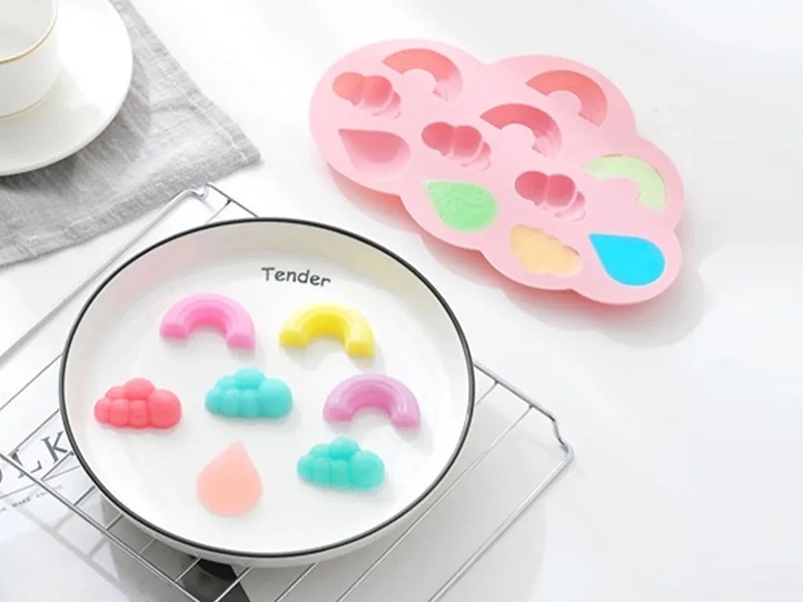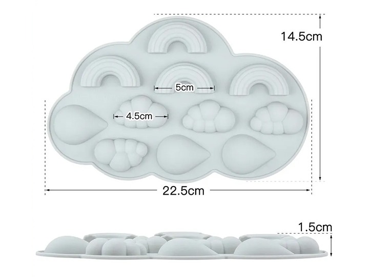 Molde de silicona para repostería nubes gotas y arcoíris