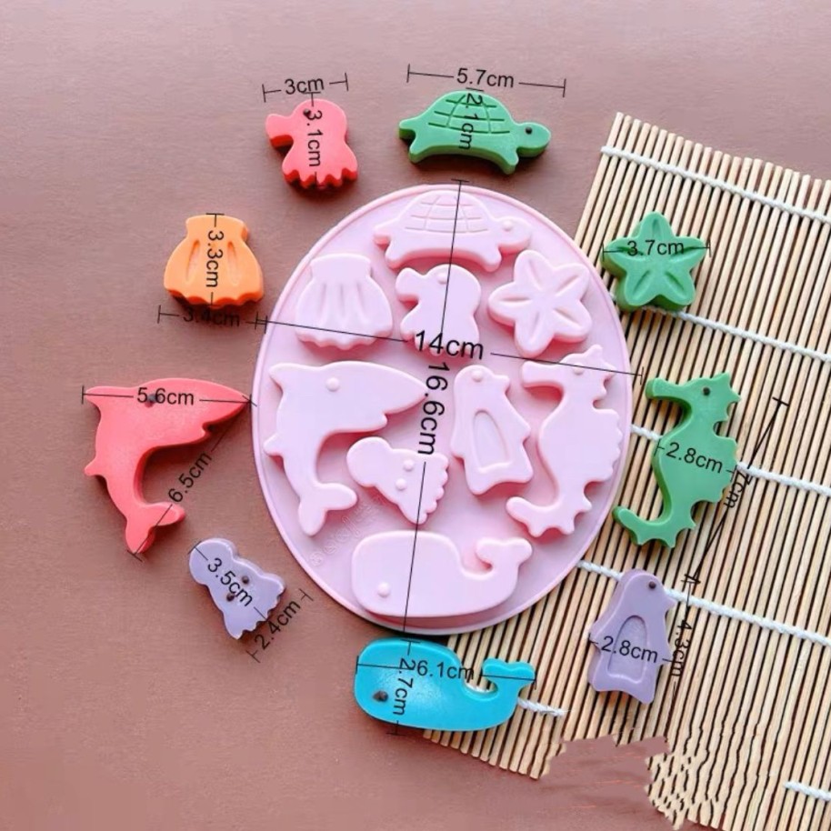 Molde de silicona con forma de 9 animales marinos