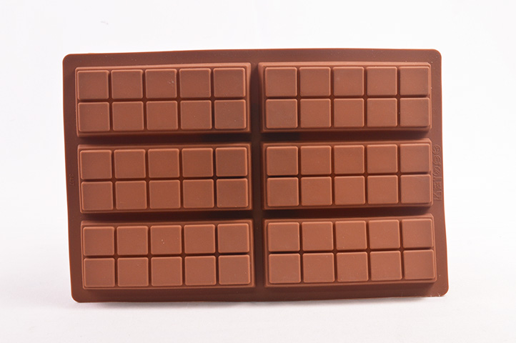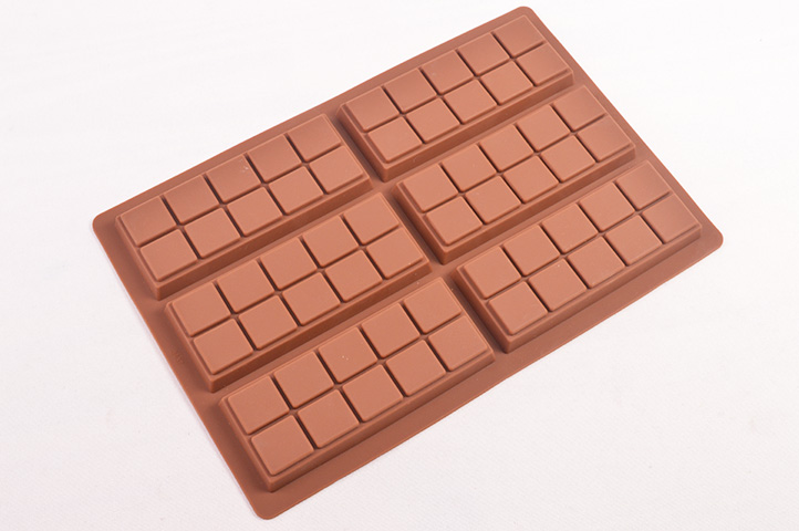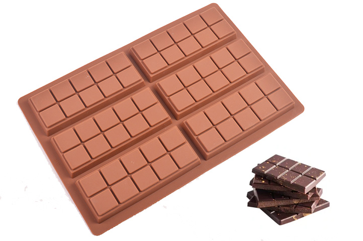 Molde de silicona para hacer 6 tabletas chocolate rectangulares con cuadrados marcados