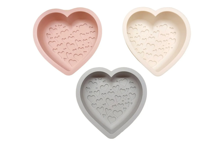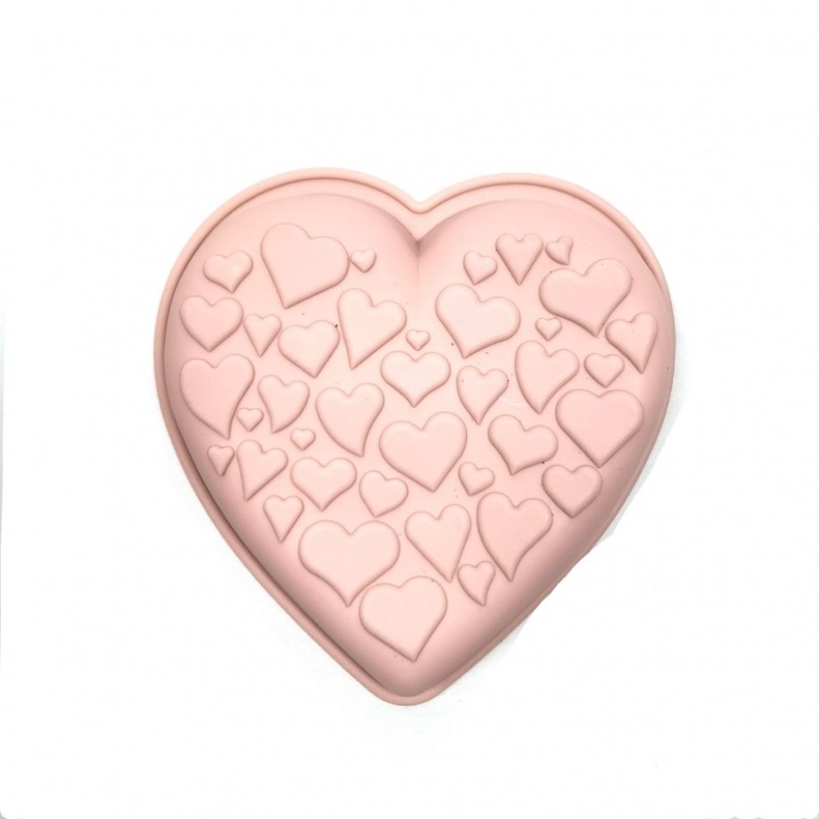 Mini tortera de silicona con forma de corazon y fondo texturado con corazoncitos