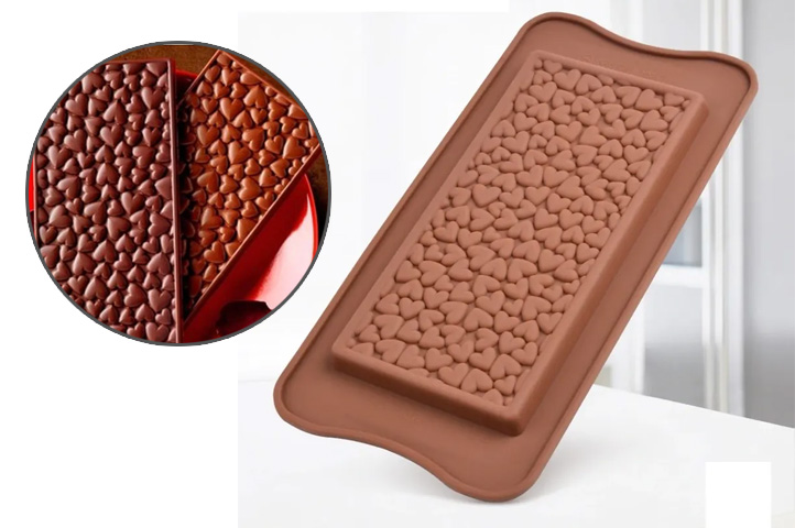 Molde de silicona para hacer una tableta de chocolate con mini corazones