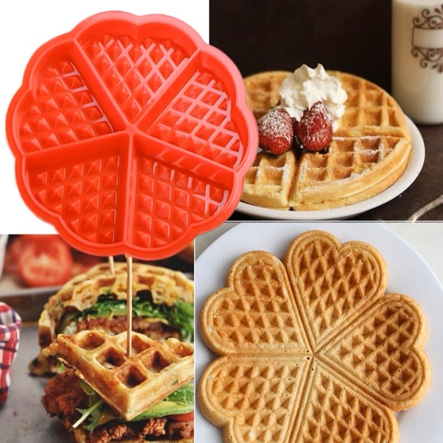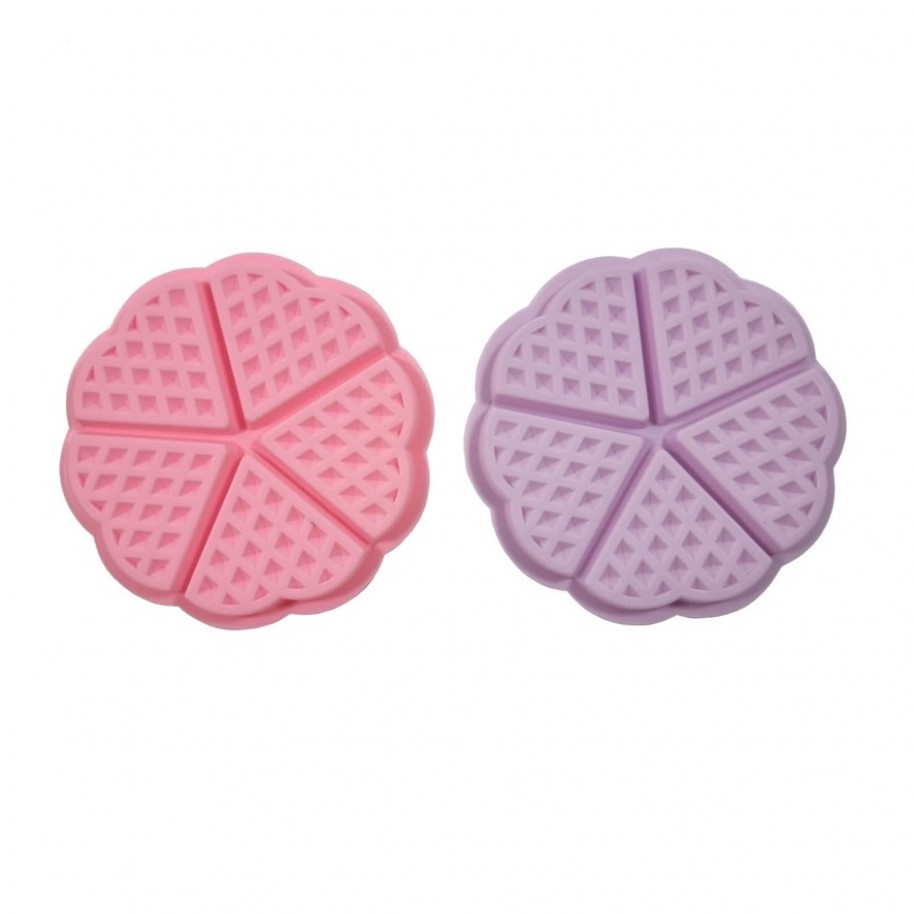 Molde de silicona redondo para hacer 5 waffles con forma de corazon