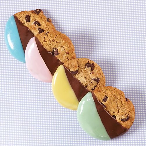 Sumergir las golosinas en dulces derretidos sin que se salgan o se desmoronen es fácil cuando usa las pinzas de inmersión en chocolate Wilton.