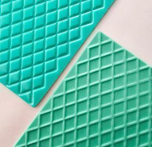 Estiras el fondant, apoyas la placa, luego moves la placa para seguir el patrón y listo!. El relieve aparece ✨