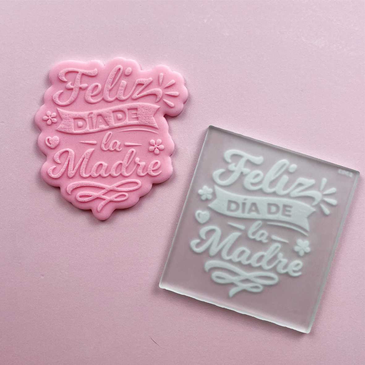 Simple y rápido de utilizar! Solo tenes que estirar pasta, apoyar el sello, hacer presión con un fratacho rígido y retirarlo! Te recomendamos que utilices el CORTANTE CONTORNO para Sello Feliz Dia de la Madre S303