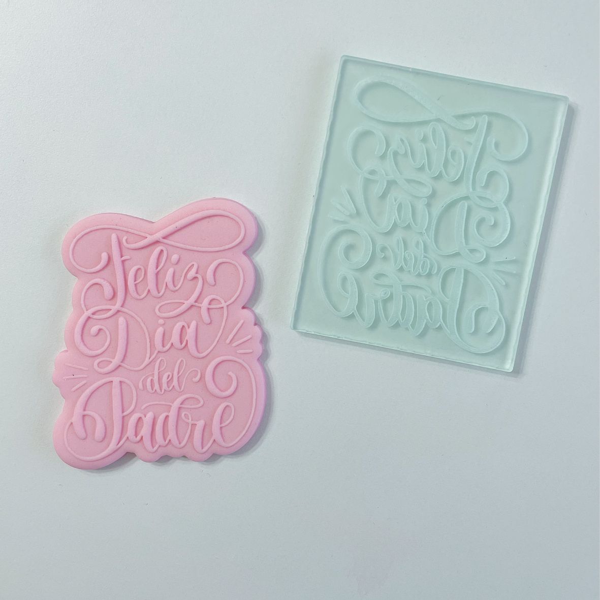 Simple y rápido de utilizar! Solo tenes que estirar pasta, apoyar el sello, hacer presión con un fratacho rígido y retirarlo! Te recomendamos que utilices el CORTANTE CONTORNO para Sello Feliz Dia del Padre S293