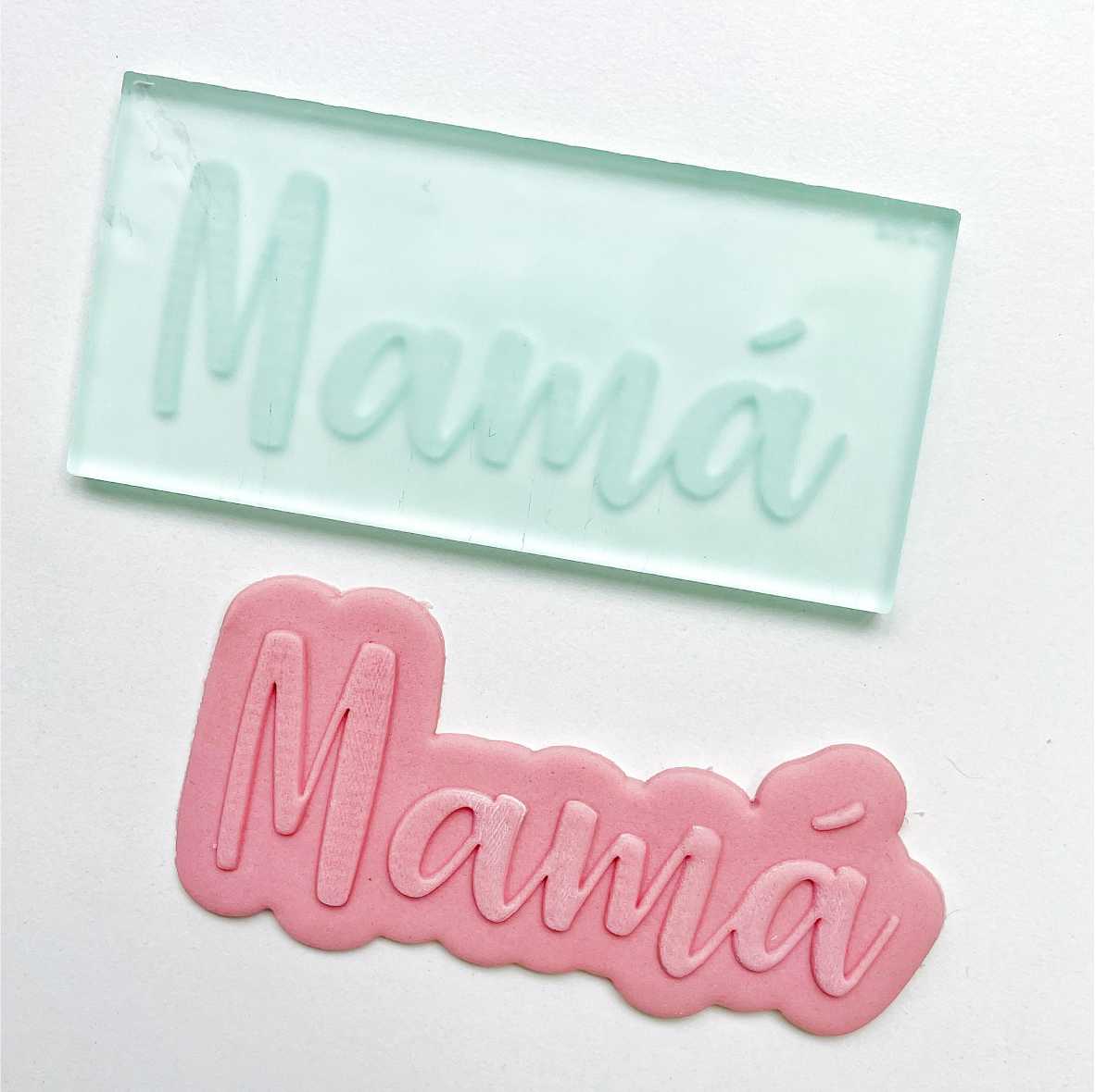 Simple y rápido de utilizar! Solo tenes que estirar pasta, apoyar el sello, hacer presión con un fratacho rígido y retirarlo! Te recomendamos que utilices el CORTANTE CONTORNO para Sello “Mamá” Mod. 3 S212