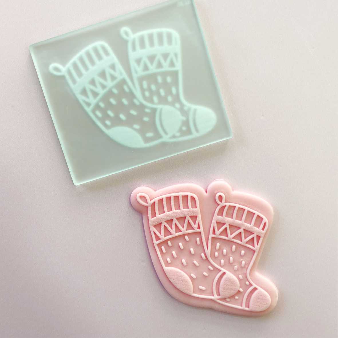 Simple y rápido de utilizar! Solo tenes que estirar pasta, apoyar el sello, hacer presión con un fratacho rígido y retirarlo! Te recomendamos que utilices el CORTANTE CONTORNO PARA SELLO MEDIAS S236 !