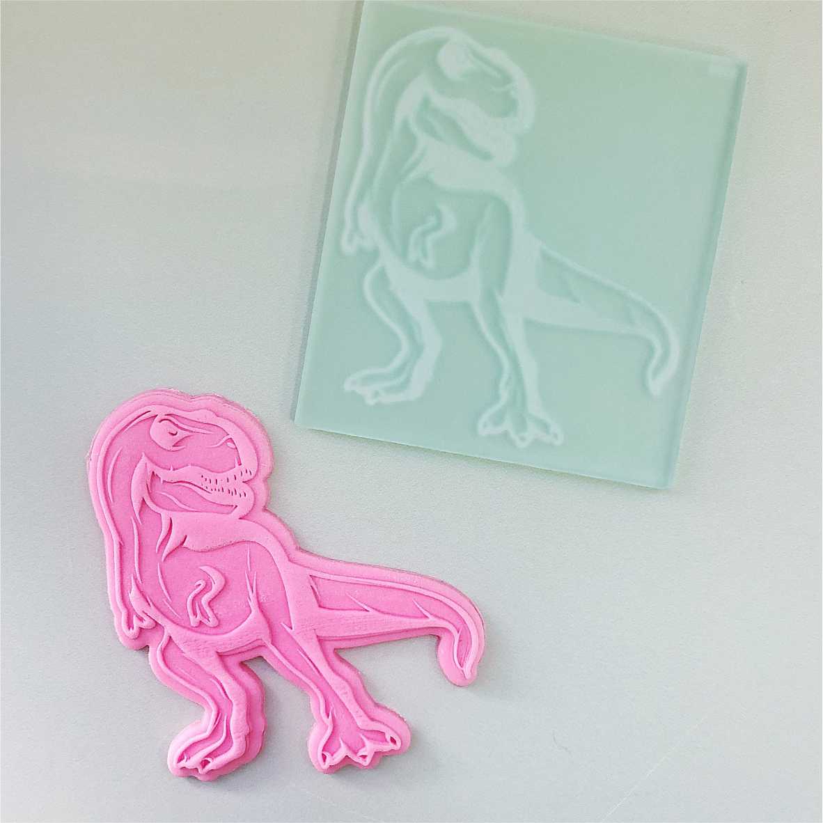 Simple y rápido de utilizar! Solo tenes que estirar pasta, apoyar el sello, hacer presión con un fratacho rígido y retirarlo! Te recomendamos que utilices el cortante de contorno para Sello T-Rex S188
