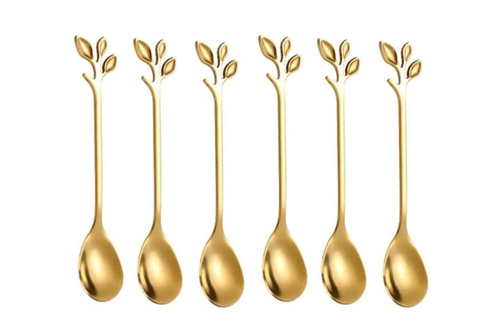 SET 6 CUCHARITAS DORADAS p/TE DISEÑO HOJAS CORTA