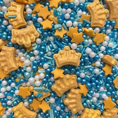 Prepara los postres para la realeza con estos hermosos sprinkles en forma de corona de Wilton. Use estos sprinkles para decorar pasteles, galletas o pasteles helados para su principito o princesa..