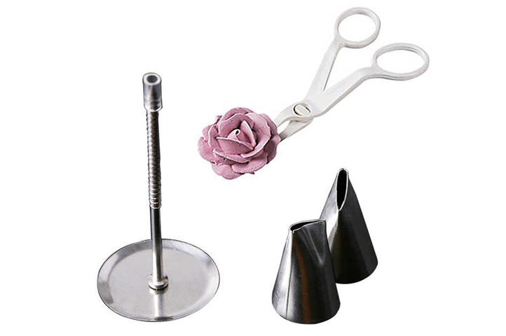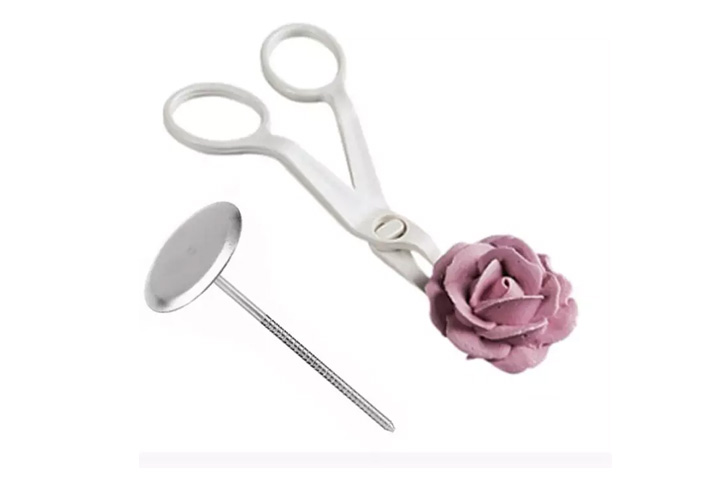 Set tijera decoradora + 2 picos acero para hacer flores + base
