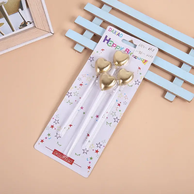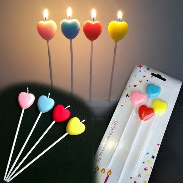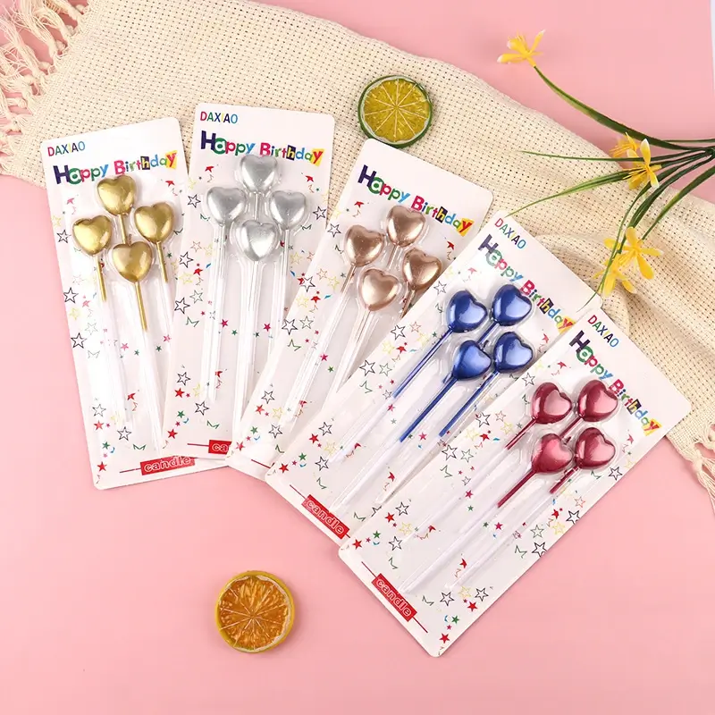 (Velas con diseño de corazón, contiene 4 unidades de colores metalizadas).