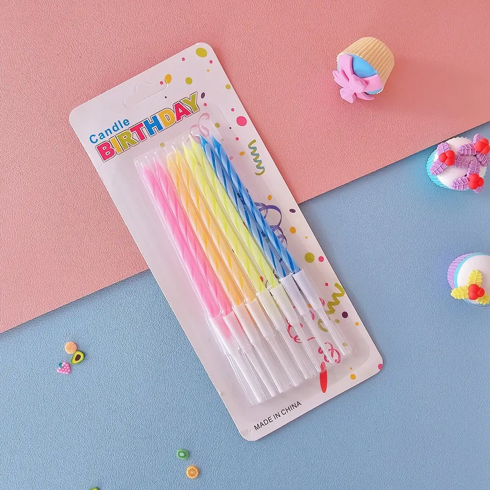 (Blíster de ocho velas de distintos colores vibrantes y hermosos).